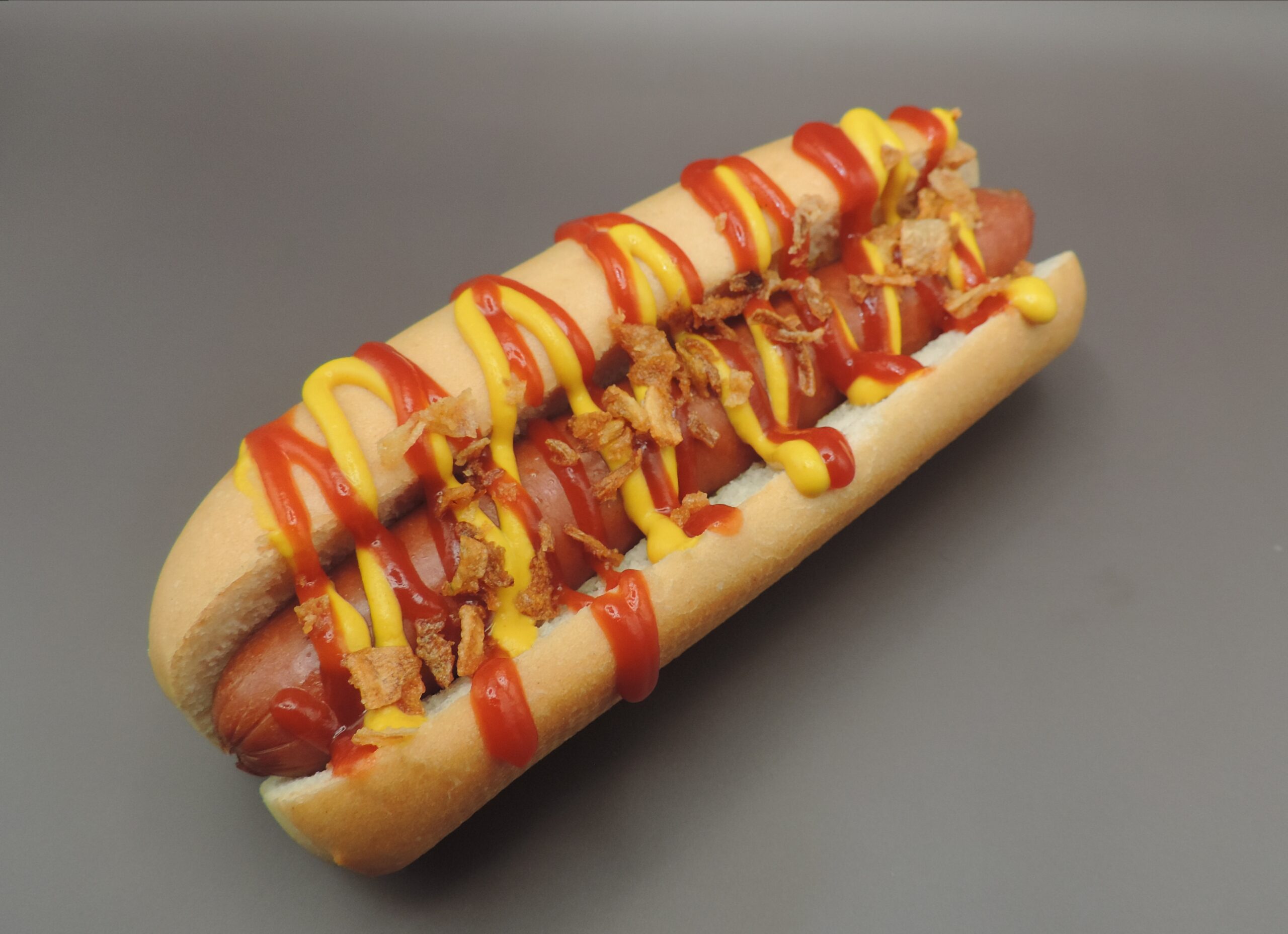 Une saucisse 100% pur bœuf, une compotée à base d’oignons, de la moutarde, du ketchup et oignons frits, le tout dans un pain cuit à la vapeur.