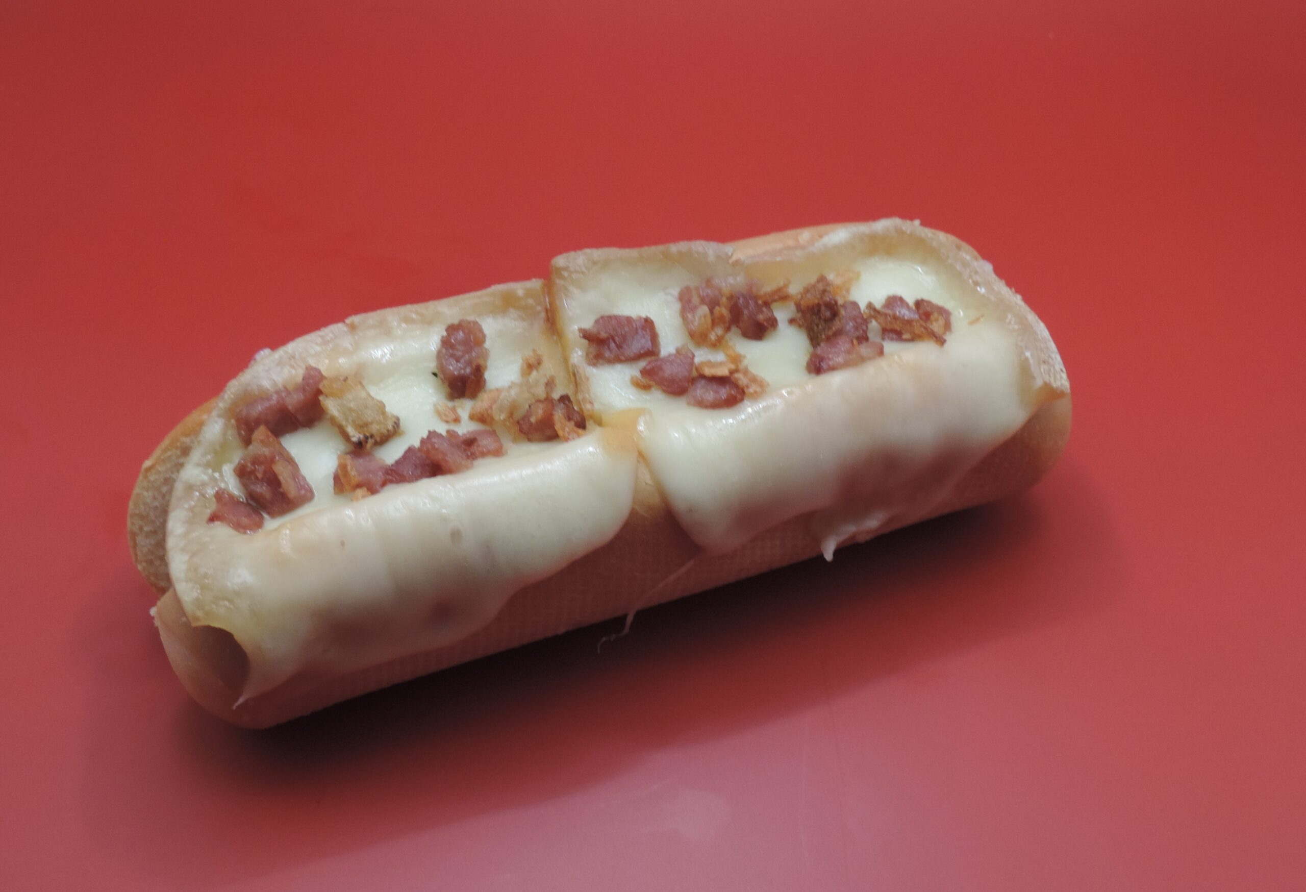 Une saucisse 100% pur bœuf, du fromage à raclette de Savoie, de la moutarde de Dijon, des oignons fraichement coupés, des cornichon, du bacon grillé et des oignons frits, le tout dans un pain cuit à la vapeur.